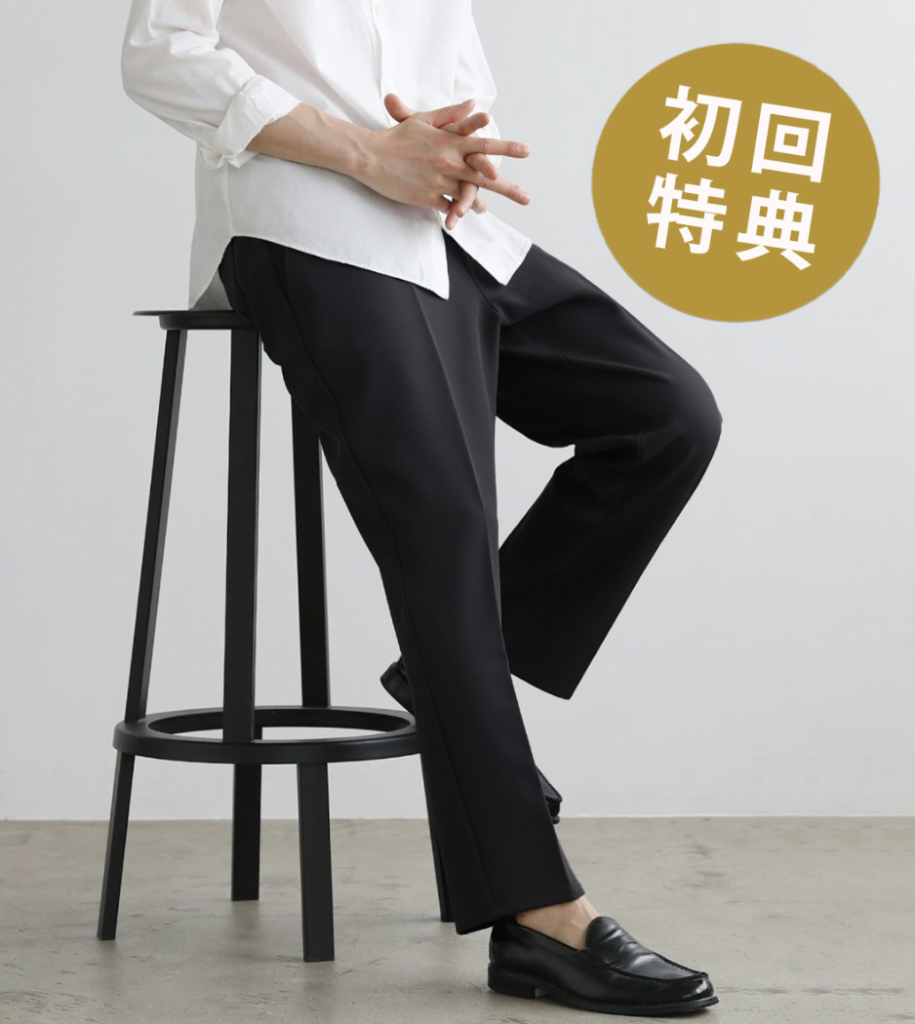 - 初回登録時にスマート黒スラックスがプレゼントされる